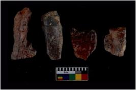 | Description / विवरण | There are n 4 flake cores. All of them are fully fluted flake cores without any trace of crested ridge flakes. Some are tapering at one end and some have sharp edges. |