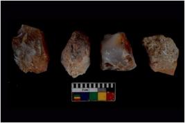 | Description / विवरण | There are n 4 flake cores. All of them are fully fluted flake cores without any trace of crested ridge flakes. Some are tapering at one end. Some have flat base and few have round edges. |