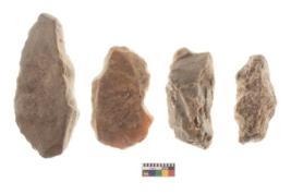 | Description / विवरण | There are n 4 of utilized worked cores and show irregular scar pattern. Two are tapering at one end. |