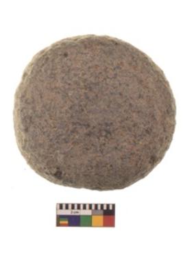 | Description / विवरण | Specimen of a roughly circular rubber stone with oval section.It is heaving flat base. |