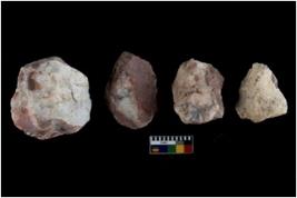| Description / विवरण | There are n 4 of utilized worked cores and show irregular scar pattern on both dorsal and ventral side. Two have broken tip. |