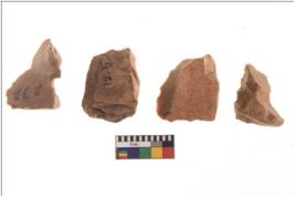 | Description / विवरण | There are n 4 utilized flake cores. There are multidirectional irregular scar pattern on both dorsal and ventral face of the flake cores. One has sharp edges and three have blunted edges. |
