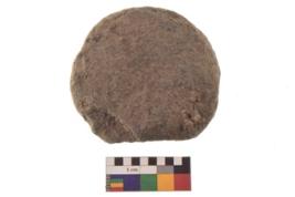 | Description / विवरण | Specimen of a roughly circular rubber stone with oval section.It is heaving flat base. |