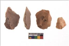 | Description / विवरण | Specimen of core tools with prominent flaking marks. They are made up of a short flakes with sides trimmed. |