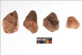 | Description / विवरण | Specimen of core tools with prominent flaking marks. They are made up of a short flakes with sides trimmed. |