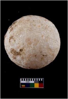 | Description / विवरण | A complete specimen of stone quartz sling ball, small in size, |