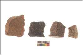 | Description / विवरण | There are n 4 flakes tool; there are multidirectional irregular scar pattern on them; made of short flakes and all four have tapering edges. |