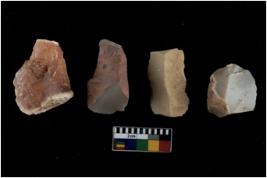 | Description / विवरण | There are n 4 of utilized worked cores and show irregular scar pattern on both dorsal and ventral side. Three have broken tip. |