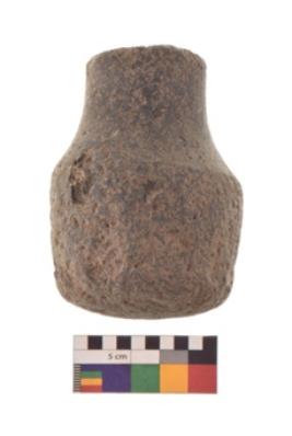 | Description / विवरण | Specimen of a roughly rounded cylindrical shaped pounder stone with battered surfaced and truncated end to hold the object |