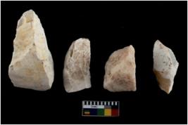 | Description / विवरण | There are n 4 of utilized worked cores and show irregular scar pattern on both dorsal and ventral side. Two have a flat base. |