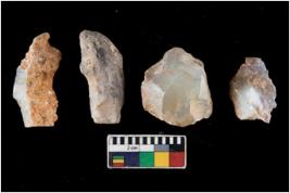 | Description / विवरण | There are n 4 utilized flake cores. There are multi directional irregular scar pattern on them. Three are tapering at one end and one has sharp edge. |