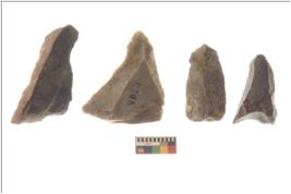 | Description / विवरण | There are n 4 flakes tool; there are triangular flake tool having flat thick body and deep long flake scar is seen on the upper side. It has flat thick bottom and pointed functional top. |
