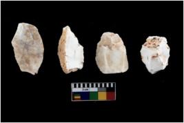 | Description / विवरण | There are n 4 of utilized worked cores and show irregular scar pattern on both dorsal and ventral side. One has a flat base. |