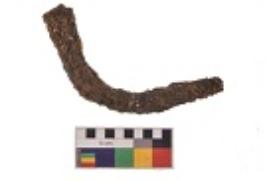 | Description / विवरण | Specimen having bent and elongated squarish body, flat head and pointed end with uniform thickness and highly corroded surface. |