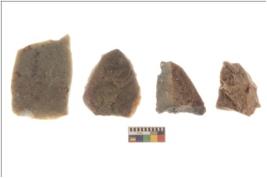| Description / विवरण | There are n 4 flakes tool; there are multidirectional irregular scar pattern on them; made of short flakes and all four have tapering edges. |
