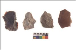 | Description / विवरण | There are n 4 utilized flake cores. There are multidirectional irregular scar pattern on both dorsal and ventral face of the flake cores. One has sharp edges and three have blunted edges. |