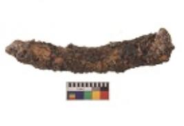 | Description / विवरण | Specimen having elongated squarish body, flat head and pointed end with uniform thickness and highly corroded surface. |