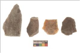| Description / विवरण | There are n 4 flakes tool; there are multidirectional irregular scar pattern on them; made of short flakes and all four have tapering edges. |