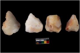 | Description / विवरण | There are n 4 of utilized worked cores and show scar pattern. Three have a flat base. |