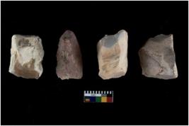 | Description / विवरण | There are n 4 of utilized worked cores and show irregular scar pattern on both dorsal and ventral side. Three have a broken tip. |