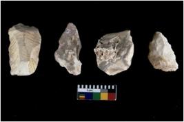 | Description / विवरण | There are n 4 of utilized worked cores and show irregular scar pattern on both dorsal and ventral side. One has a flat base. |