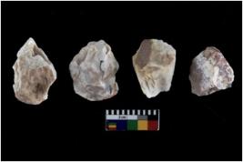 | Description / विवरण | There are n 4 of utilized worked cores and show irregular scar pattern on both dorsal and ventral side. Two have broken tip. |