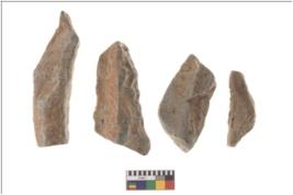 | Description / विवरण | There are n 4 flakes tool; there are multidirectional irregular scar pattern on them; made of short flakes and all four have tapering edges. |