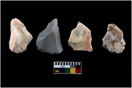| Description / विवरण | There are n 4 of utilized worked cores and show irregular scar pattern on both dorsal and ventral side. They are tapering at one end. |