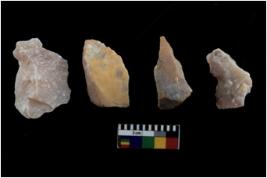 | Description / विवरण | There are n 4 of utilized worked cores and show irregular scar pattern on both dorsal and ventral side. Two have a flat base. |