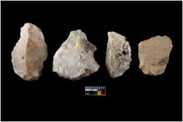 | Description / विवरण | There are n 4 of utilized worked cores and show irregular scar pattern. Three are tapering at one end. |