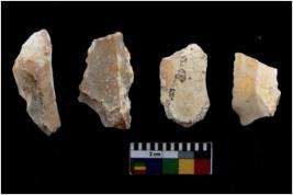 | Description / विवरण | There are n 4 of utilized worked cores and show irregular scar pattern on both dorsal and ventral side. Two have a broken tip. |