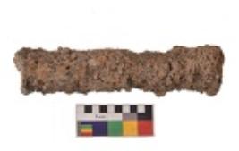 | Description / विवरण | Specimen having elongated rounded body, tubular perforation with uniform thickness and highly corroded surface. |