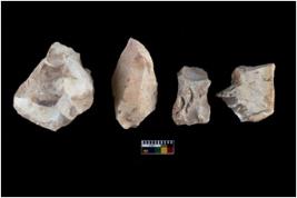 | Description / विवरण | There are n 4 of utilized worked cores and show irregular scar pattern. Two have a broken tip. |
