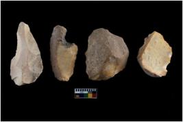 | Description / विवरण | There are n 4 of utilized worked cores and show irregular scar pattern on both dorsal and ventral side. One has a broken tip. |
