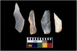 | Description / विवरण | There are n 4 of utilized worked Blades and show multidirectional irregular scar pattern on both dorsal and ventral sides. One has a flat base. |
