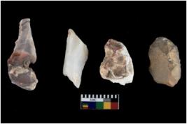 | Description / विवरण | There are n 4 of utilized worked cores and show irregular scar pattern on both dorsal and ventral side. Two have a flat base. Two are elongated in shape. |