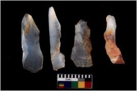 | Description / विवरण | There are n 4 of utilized worked Blades and show multidirectional irregular scar pattern on both dorsal and ventral sides. One has a flat base. |