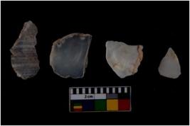 | Description / विवरण | There are n 4 flake cores. All of them are fully fluted flake cores without any trace of crested ridge flakes. Some are tapering at one end. Some have flat base and some have blunted edges. |