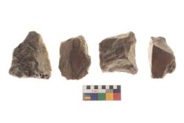 | Description / विवरण | There are n 4 of utilized worked cores and show irregular scar pattern. They have sharp edges while two have a broken tip. |