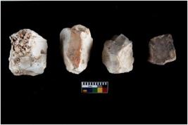 | Description / विवरण | There are n 4 of utilized worked cores and show irregular scar pattern on both dorsal and ventral side. They have a broken tip. |