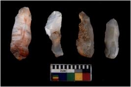 | Description / विवरण | There are n 4 of utilized worked Blades and show multidirectional irregular scar pattern on both dorsal and ventral sides. They have a broken tip. |