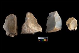 | Description / विवरण | There are n 4 of utilized worked cores and show irregular scar pattern on both dorsal and ventral side. One has a broken tip. |