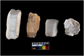 | Description / विवरण | There are n 4 of utilized worked cores and show irregular scar pattern on both dorsal and ventral side. Two are elongtaed in shape. |