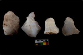 | Description / विवरण | Specimen of a cores with several broad fluted marks. Some of them are tapering at one end. |