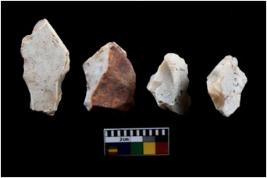 | Description / विवरण | There are n 4 of utilized worked cores and show irregular scar pattern. They are tapering at one end. |