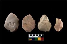 | Description / विवरण | There are n 4 of utilized tworked cores and show irregular scar pattern on both dorsal and ventral side. Three are tapering at one end and one has a broken tip. |
