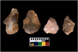 | Description / विवरण | There are n 4 utilized flake cores. There are multi directional irregular scar pattern on them. One has sharp edge and three have blunted edges. |