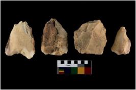 | Description / विवरण | There are n 4 of utilized worked cores and show irregular scar pattern on both dorsal and ventral side. They have sharp edges. |