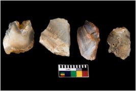 | Description / विवरण | There are n 4 ; worked utilized flakes; there are multidirectional irregular scar pattern on both dorsal and ventral face of the flakes. One is are tapering at one end. All are having sharp edges. |