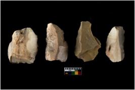 | Description / विवरण | There are n 4 of utilized worked cores and show irregular scar pattern on both dorsal and ventral side. Two are tapering at one end and two have a broken tip. |